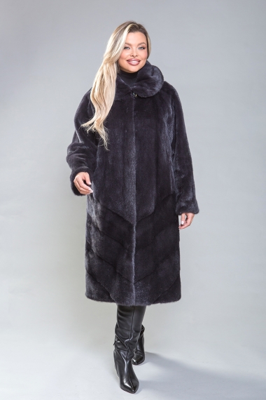 Полупальто из меха норки с капюшоном, выполненное в оригинальном стиле. Верхняя часть модели изготовлена по технике роспуска, в то время как низ и рукава состоят из диагонально расположенных пластин. Полупальто снабжено регулируемыми утяжками, которые позволяют подстроить его по талии, рукавам и низу. Декоративные пуговицы на рукавах можно снять, если это необходимо. Длина изделия составляет 100 см. Благодаря небольшому весу, полупальто обеспечивает тепло и комфорт в любую погоду, сохраняя свою красоту на протяжении многих сезонов.