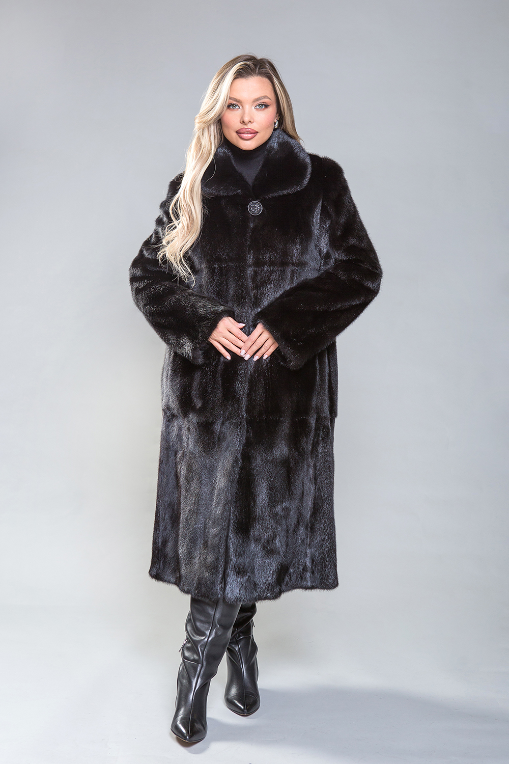 Полупальто из норкового меха с воротником классического фасона, выполненное из пластин с добавлением роспуска, представляет собой универсальное решение. Длина изделия составляет 115 сантиметров. Модель оснащена регулируемыми утяжками на рукавах. Профессиональные стилисты считают, что шубка классического силуэта — это безупречный выбор. Она идеально подходит для любой фигуры, обеспечивая элегантный и безупречный внешний вид.