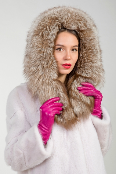 Курточка из меха норки. Капюшон модели декорирован мехом шикарной лисы. Крой изделия роспуск с добавлением пластин. На рукавах модели есть регулирующие утяжки. Длина изделия 70 см. Курточка дополнена поясом, позволяющим подчеркнуть стройность силуэта, а благодаря шикарной лисе модель выглядит очень эффектно, добавляя в образ нотки шика и гламура!