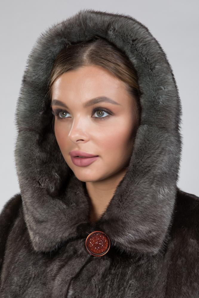 Классическое норковое полупальто прямого силуэта с длиной чуть ниже колена обладает: