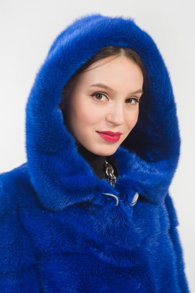 Курточка из меха норки с капюшоном. Крой изделия поперечная выкладка пластин. На рукавах и по низу модели имеются регулирующие утяжки. Длина изделия 75 см. Рукава курточки трансформируются в более укороченные. Украсьте свой зимний образ яркой норковой шубкой сногсшибательного цвета ультрамарина и наслаждайтесь полноценным комфортом в прохладную погоду! Нет в наличии!