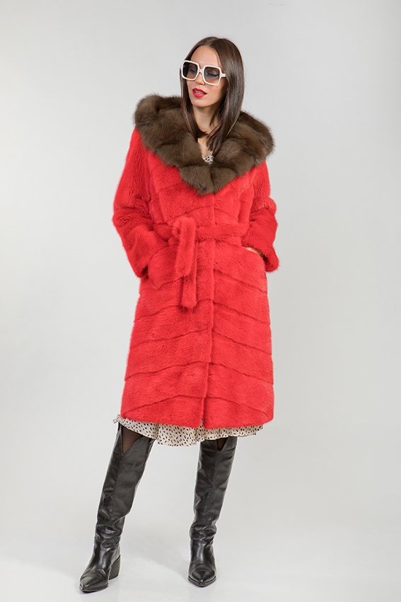Полупальто из меха норки. Капюшон модели декорирован мехом куницы. Крой изделия - поперечная выкладка пластин. Модель оснащена утяжками на талии и по низу изделия. Рукава шубки трансформируются в более укороченные. Длина изделия 100 см. Меховой пояс позволит скорректировать шубку по фигуре! Украсьте свой зимний образ норковой шубкой и наслаждайтесь комфортом и теплом в морозную погоду!