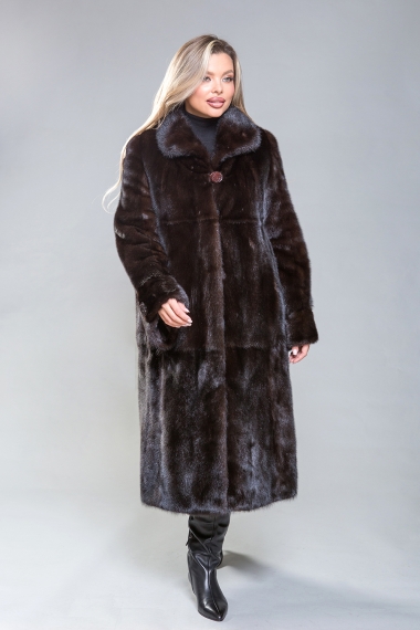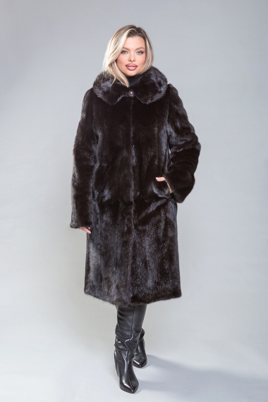 Норковое полупальто с капюшоном. Модель выполнена в виде пластин с добавлением роспуска. Пальто оснащено регулируемыми утяжками на рукавах и в области талии. Длина изделия составляет 110 см. Классический силуэт делает это меховое пальто универсальным выбором. Профессиональные стилисты утверждают, что такое полупальто — это безупречный выбор, который гарантирует элегантность.