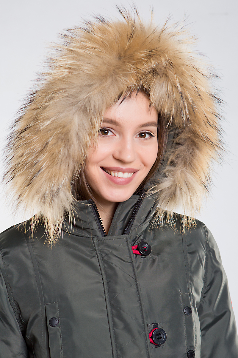 Стильное и удобное полупальто. Капюшон модели декорирован мехом енота. Изделие застегивается на молнию и пуговицы. В такой удлиненной куртке вам будет тепло и комфортно!