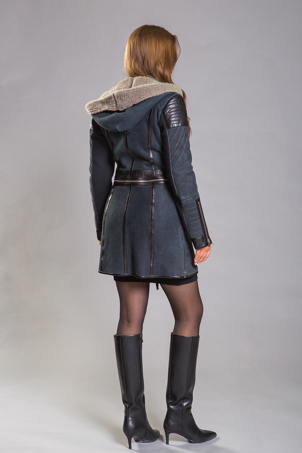 Эта дубленка, изготовленная из овчины, имеет капюшон и приталенный силуэт. Модель декорирована кожей и молниями, что делает её не только стильной, но и очень удобной. Прекрасная вещь для молодых и активных девушек, которые ценят комфорт и стиль!