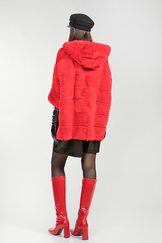 Куртка-пончо из меха кролика "Рекс"с капюшоном. Крой изделия поперечная выкладка пластин. Модель застегивается на молнию. Изделие имеет удобные кармашки. Рукава курточки укороченные, что позволяет носить модель с длинными перчатками и митенками. Такая меховая курточка-пончо прекрасно сочетается с одеждой любой длины и станет незаменимой вещью в гардеробе!